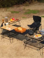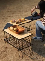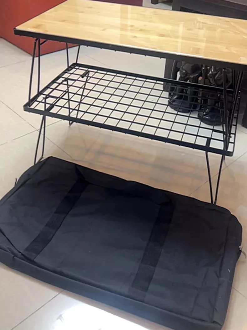 Be the first to review “Steel Mesh Camping Rack Table Foldable Portable Stacking Storage Rack Wood Picnic Camping Table”