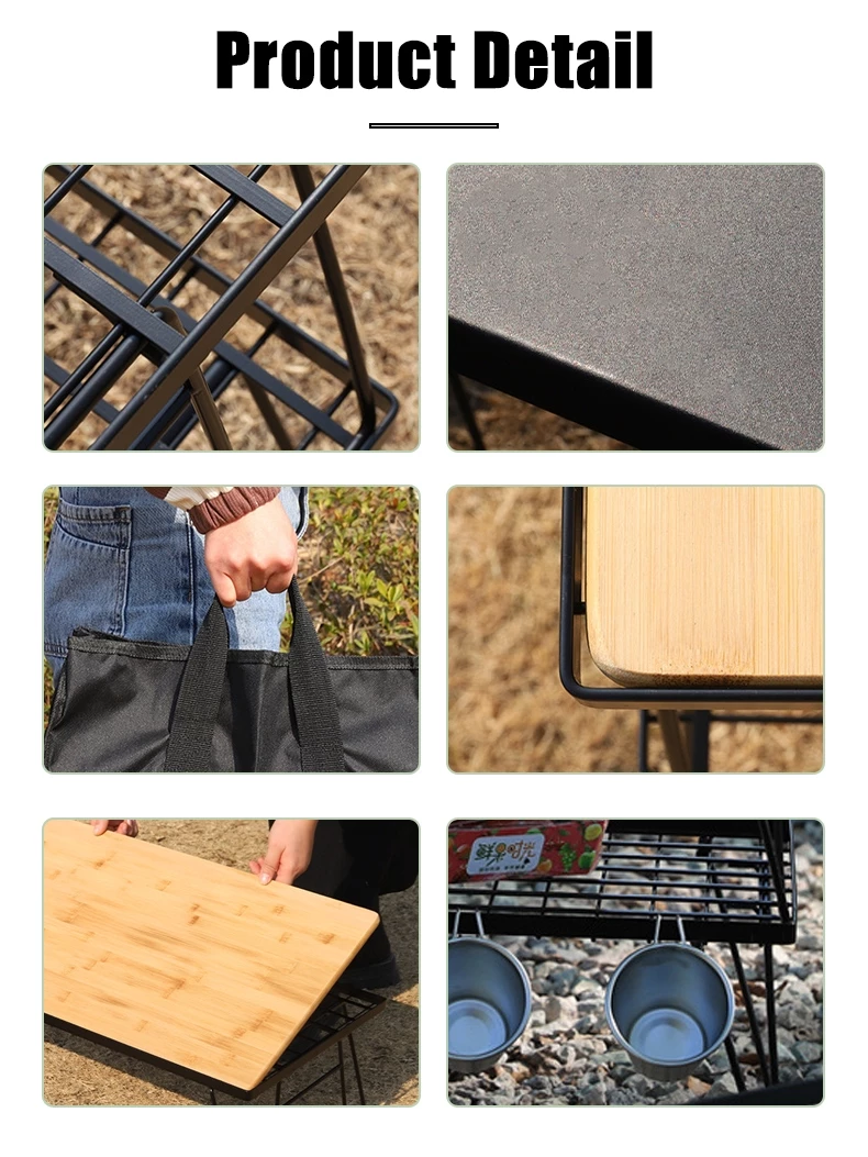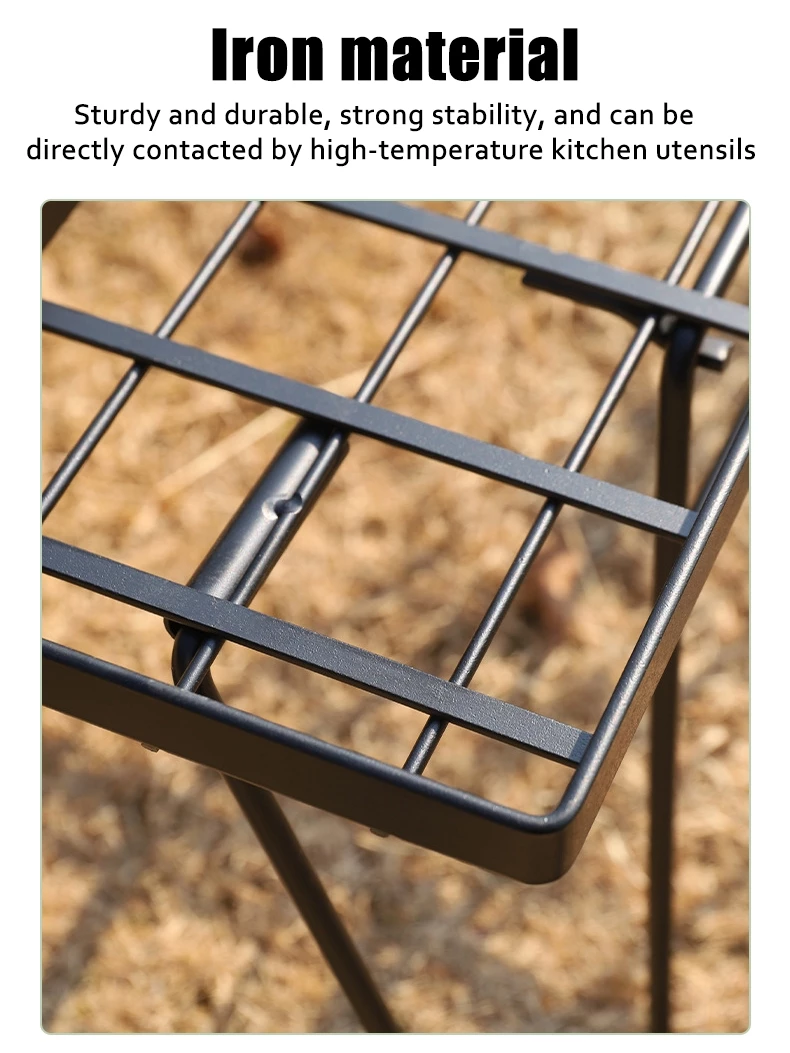 Steel Mesh Camping Rack Table Foldable Portable Stacking Storage Rack Wood Picnic Camping Table